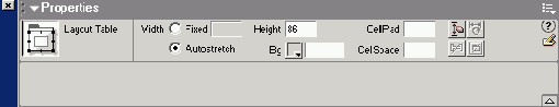 Dreamweaver также позволяет нам настроить кое-какие параметры таблицы разметки. Выберите таблицу и обратите внимание на редактор свойств -см. рис. 8.26.